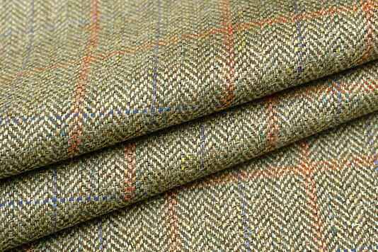深みのある色合いが、毛足様々な色合いときらめきが混ざり合う、華やかなファンシーツイード。