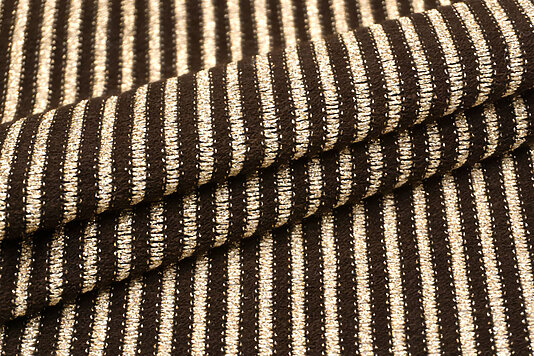 マットなブラウンときらめくゴールドを交互にストライプ状に織り上げた、手の込んだお生地です。