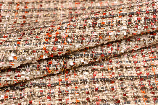 様々な色合いときらめきが混ざり合う、華やかなファンシーツイード。