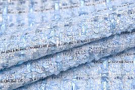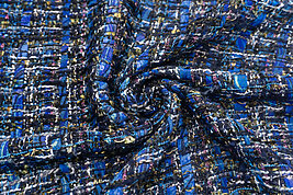 ブルー系の様々なヤーンが賑わう、華やかで洗練されたツイードです。