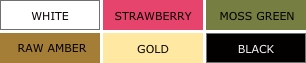 光沢のあるホワイトのシルク・サテンに、ストロベリーやモスグリーン、ローアンバー、ゴールド、ブラックなどを用いて、