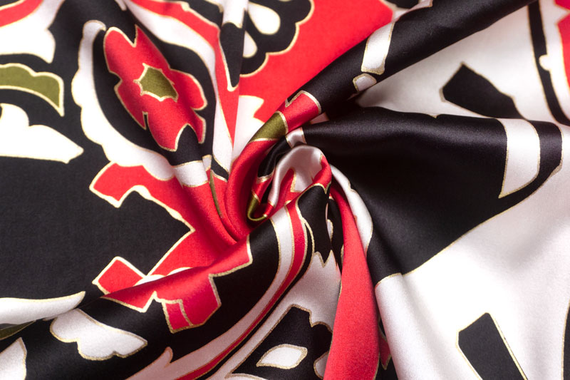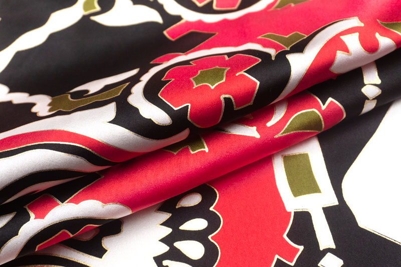 大胆なプリント柄が印象的な、イタリア製のピュアシルク・サテン。
