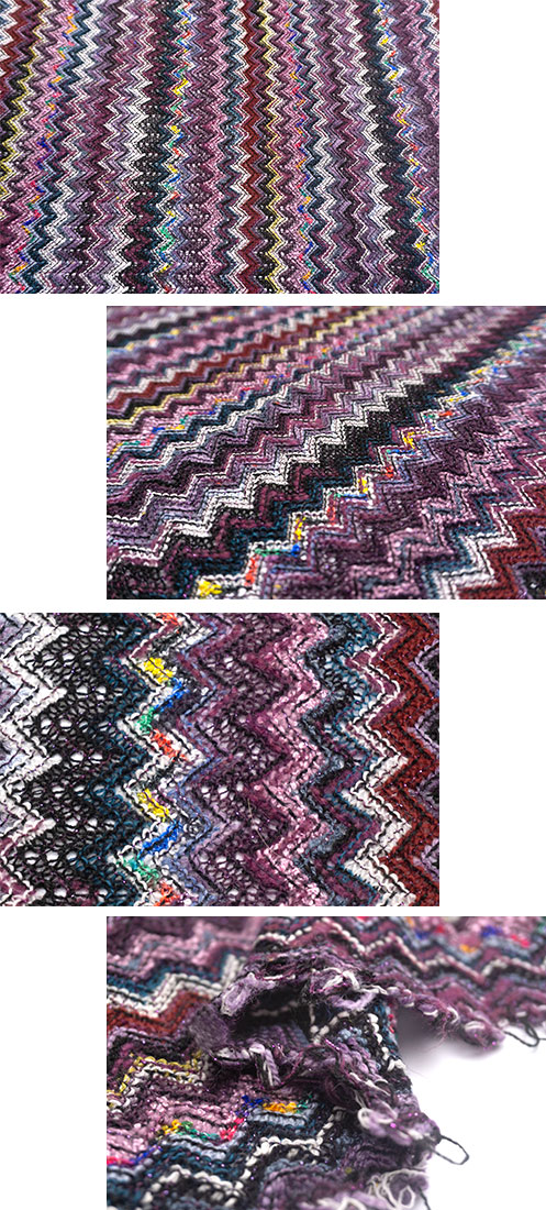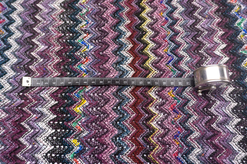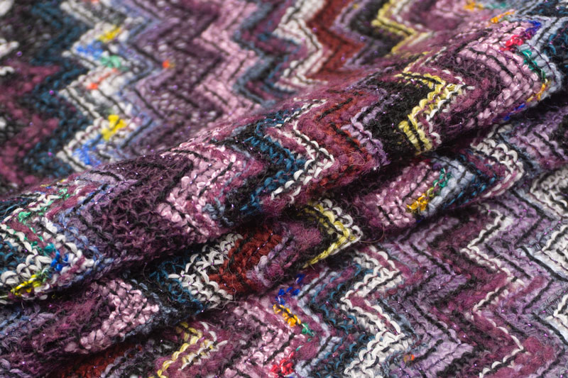 オーキッドのきらめくラメ糸をゆったりとジグザグ状に編み込んだ素材。