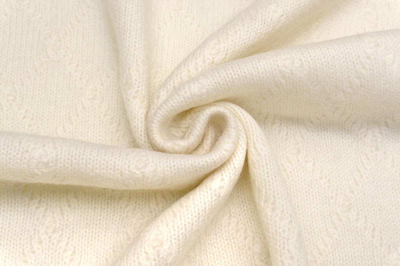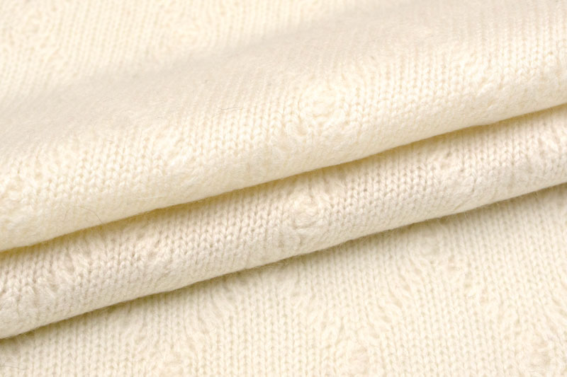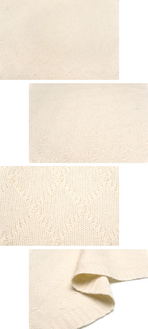 シンプルなメリヤス編みの中に、目の大きさを変えたダイア柄が浮かび上がる様、ジャカードで表現した逸品。