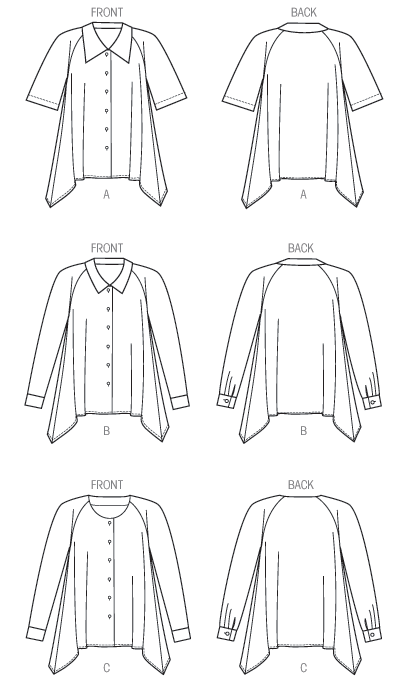 B, C: 袖口タック、袖口ボタン、イッテコイ