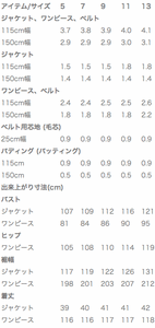 | アイテム | ジャケット、ワンピース、ベルト | |