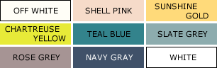 シャルトルーズイエロー、ティールブルー、スレートグレー、ローズグレーなどを用いて、花々をプリントで表現した逸品。