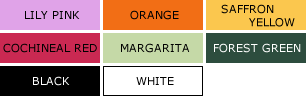 透明感のあるホワイトのコットン・ローンをブラックのベースにし、リリーピンクやオレンジ、サフランイエロー、コチニールレッド、