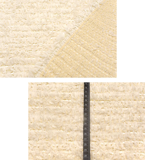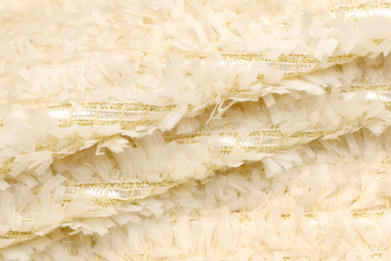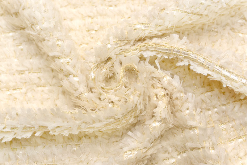 長いリボンヤーンときらめきが賑わう、華やかなツイードです。