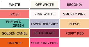 | カラー | ホワイト、オフホワイト、ピンク、ラベンダー、グリーン、ワイン、オレンジ |